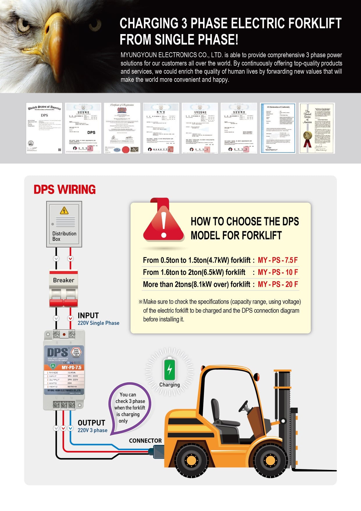 DPS Used for 0.5HP(0.4kW) 1.5A Motor, Single to 3 Phase Converter, MY-PS-1, 1 DPS Must Be Used for 1 Motor Only, Input/Output 200-240V, UL Listed